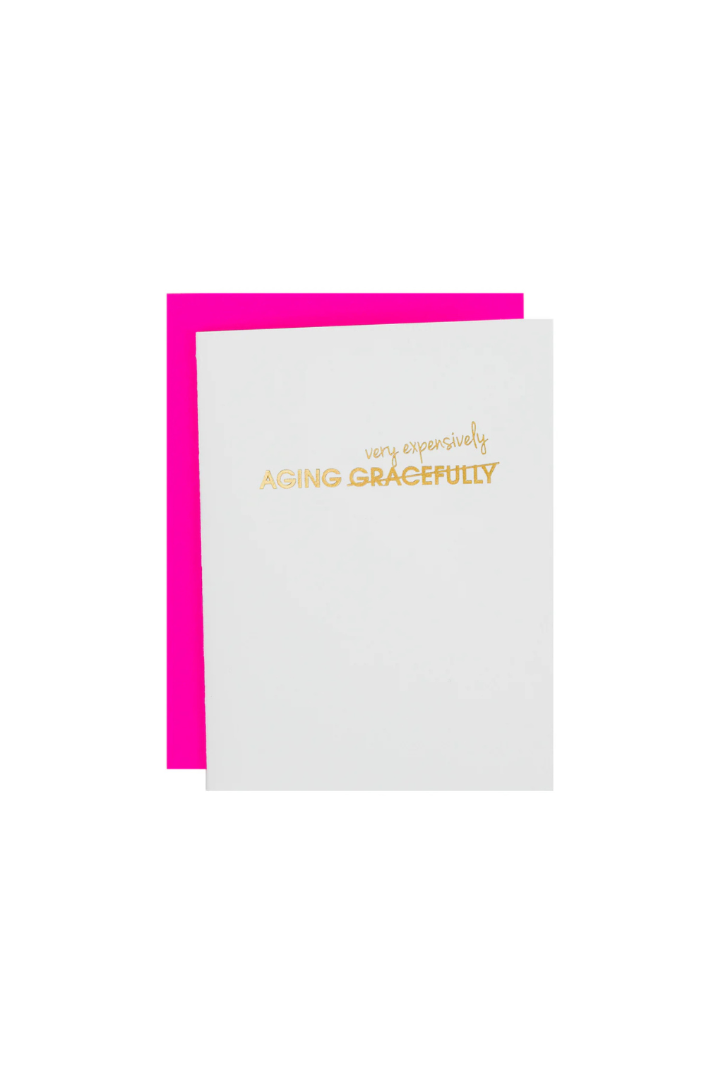 The "Aging Gracefully" card is letterpress printed on a vintage printing press in sunny California.