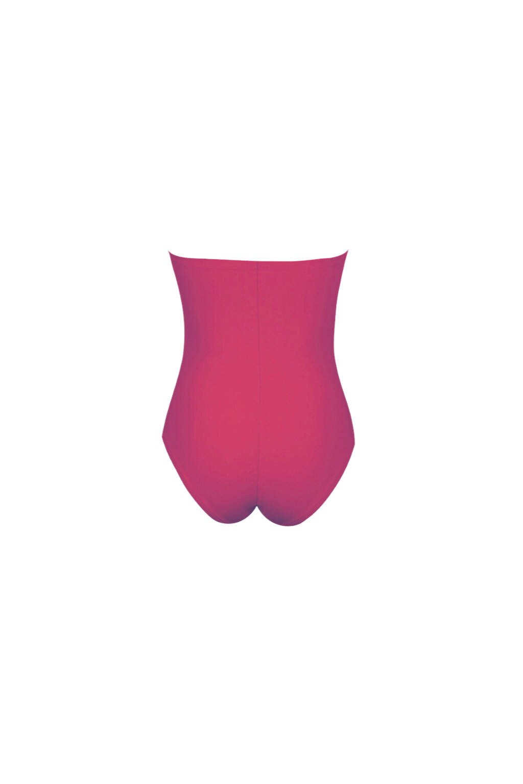 Sometimes basic is beautiful. The label is renowned for its pioneering construction, note the signature Xtra Life LYCRA® fibers for superior stretch and recovery. Flattering ruching detail down center front makes this extra special. For those reticent about a strapless neckline, the bust features shelf bra with no slip silicone band. Full coverage at rear. Swim wardrobe staple that doubles as a pretty body suit with a skirt.