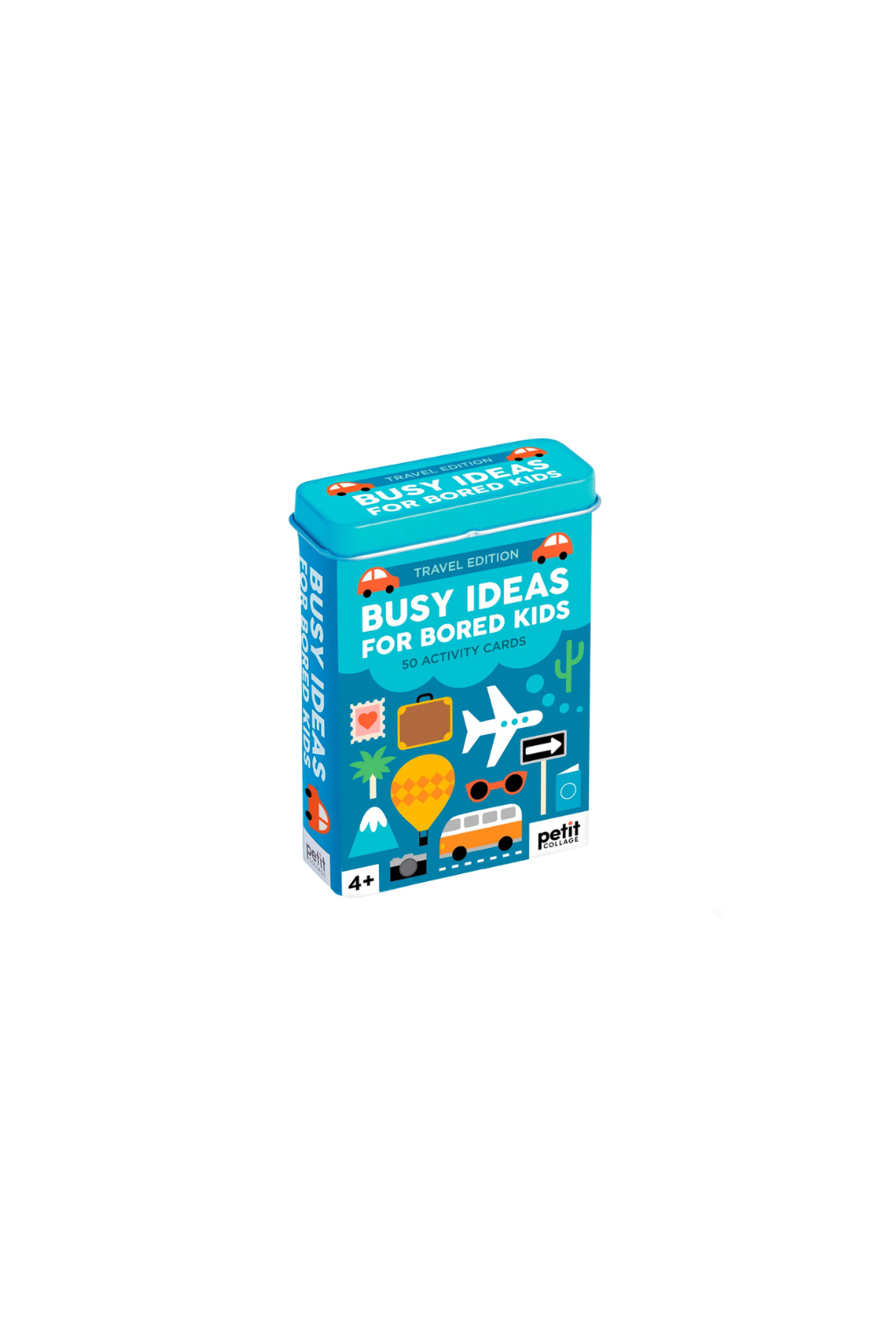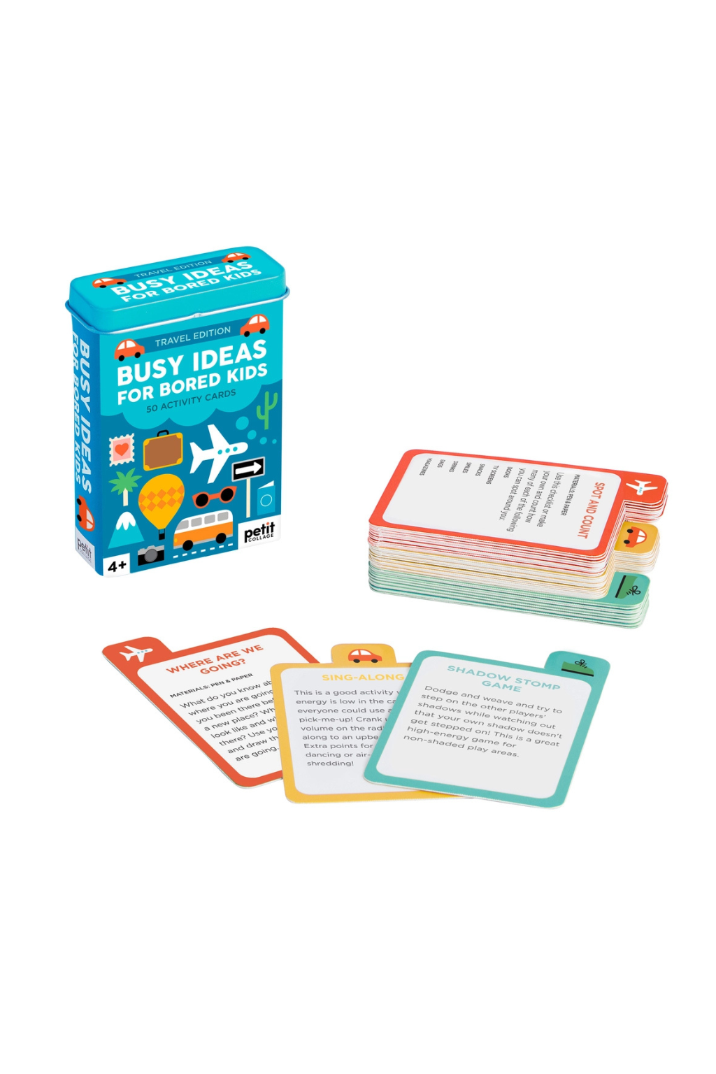 Out of ideas for how to interest bored kids? Pick a card! This card pack in a handy tin includes 50 fun ideas to keep boredom at bay as kids are traveling. Choose cards with the plane icon for plane travel ideas, the car icon for road trip ideas, and the shoe icon for walking ideas. Keep the kids entertained on your next vacation!