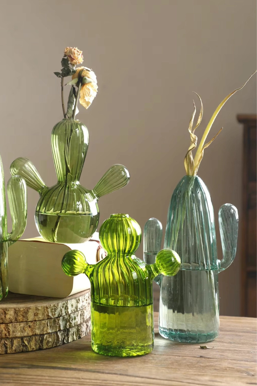 This unique and charming vase brings a touch of nature indoors, allowing you to display your favorite blooms in a stylish and modern way. Crafted from high-quality glass, the cactus-shaped design adds a playful and eye-catching element to any room.