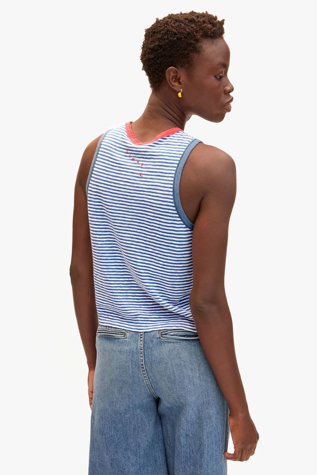 Some are saying this is the tank of the summer. Crafted in a cotton/linen blend.