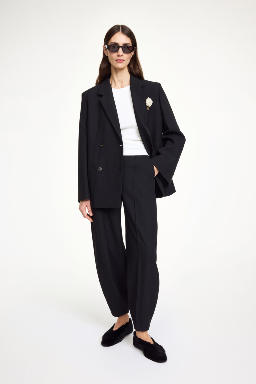 Office wear made easy – that’s the definition of the Charlie trousers. Set on a high waist and with classic tailored details, the design falls to a barrel leg that makes for a contemporary take on suiting.