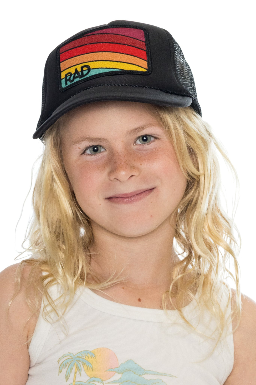 Find your 'Friday Happy' no matter what day it is! A hat to look and feel good in! A comfortable foam front, mesh back, high crown trucker hat featuring an adjustable snap-back.