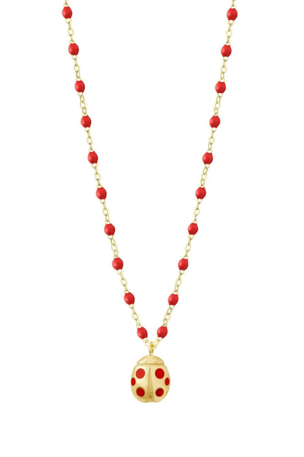 We want to wear it all year long. The gigi Clozeau poppy Ladybug necklace, with an 18 carat yellow gold Classic Gigi poppy chain. A little Ladybug, bringing good news, when you land on my wrist, good things are coming…
