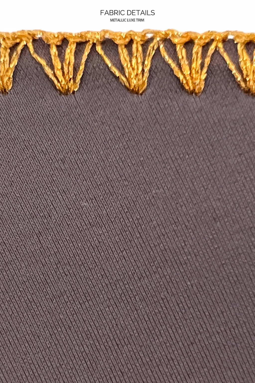 Seamless full coverage bottoms with signature ruched back and delicate gold crochet stitching.