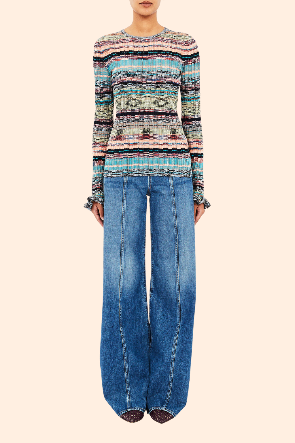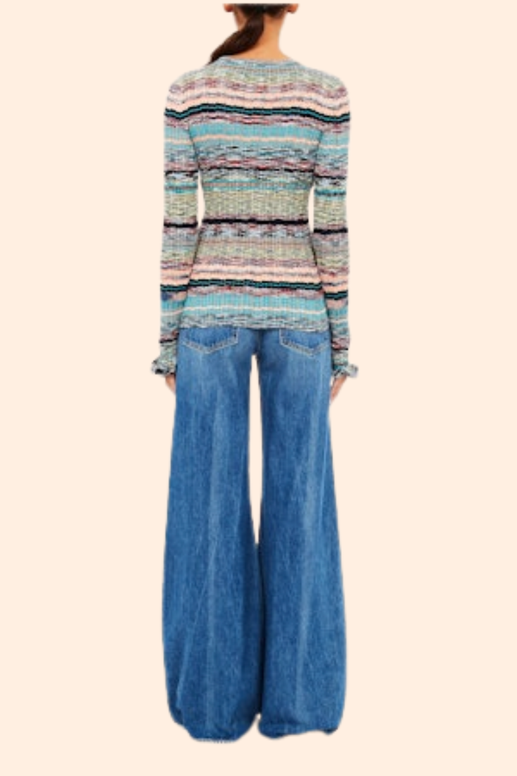 The Maci Pullover lifts the mood on crisp days with prismatic stripes, rib-knitted from space-dyed yarns. Adorned with rows of pointelle trims, it has a close fit with long sleeves playfully finished with ruffles. This multicolored sweater easily pulls over.