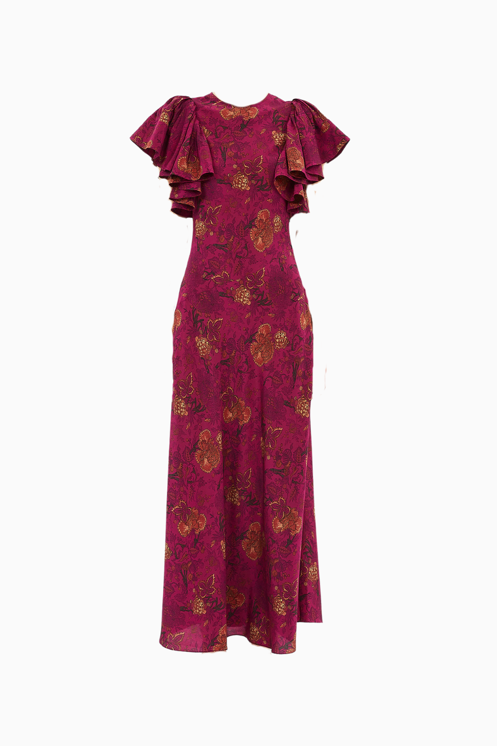 Mariam Silk Bias Cut Flutter Sleeve Dress