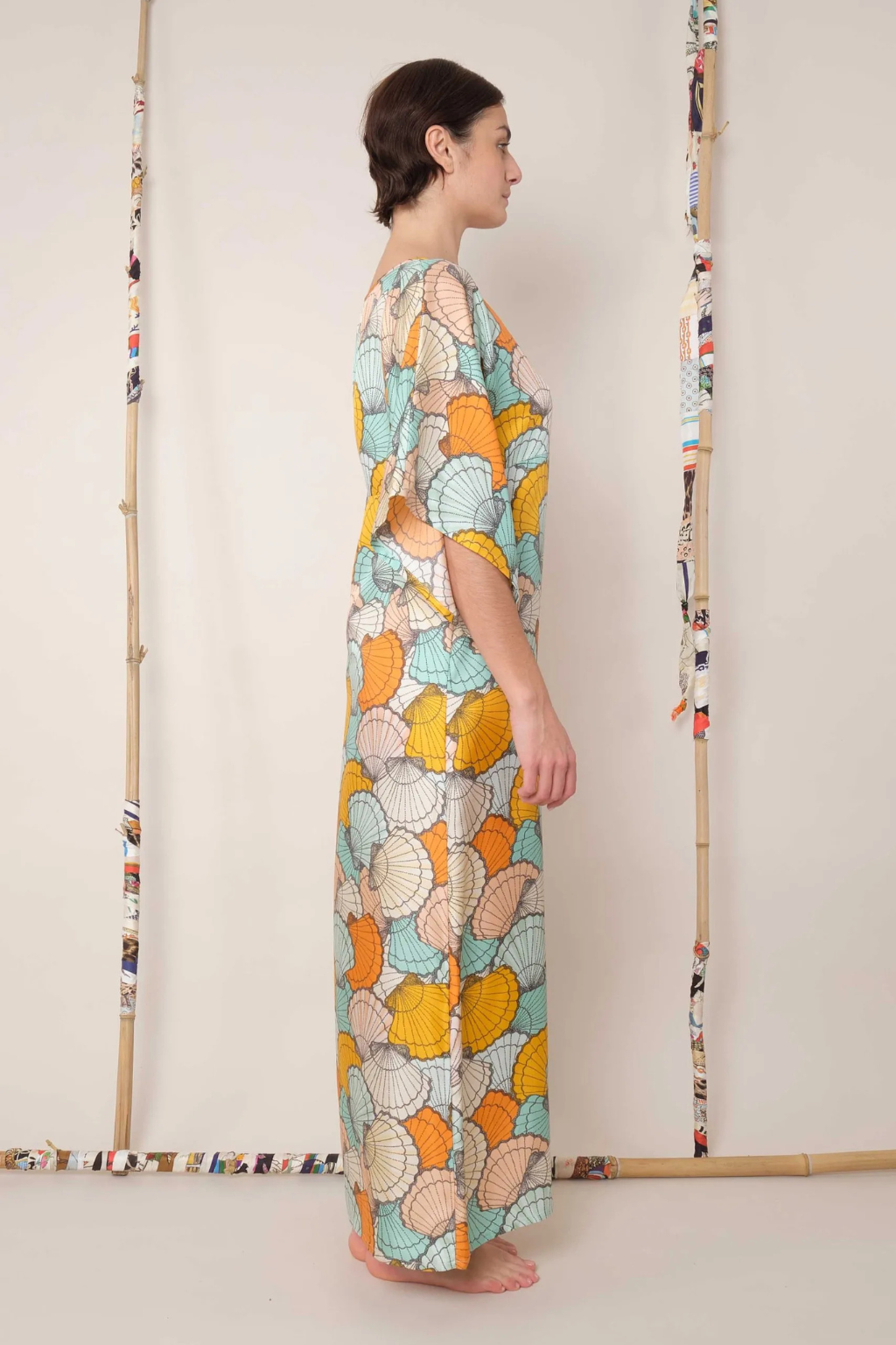 Maxi dress with three quarter length flared sleeves and a slit on left side. The Midday Dress is crafted in the original print "ST JACQUES” based on Laurence Kiberlain's drawings.