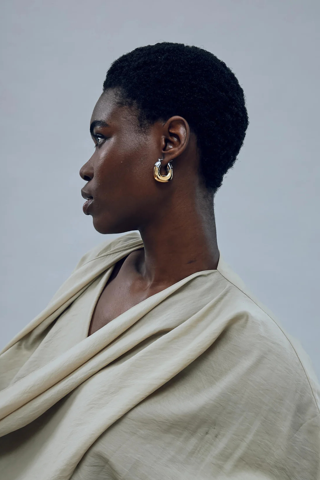 Make it mini! LF's iconic, best-selling hoop earrings just got even more wearable, with a slightly smaller drop to suit any style situation. In gold and silver-plated brass.