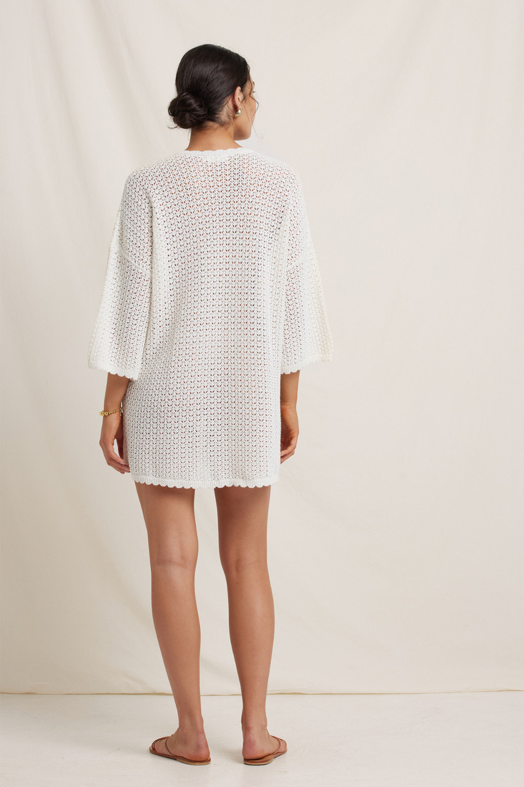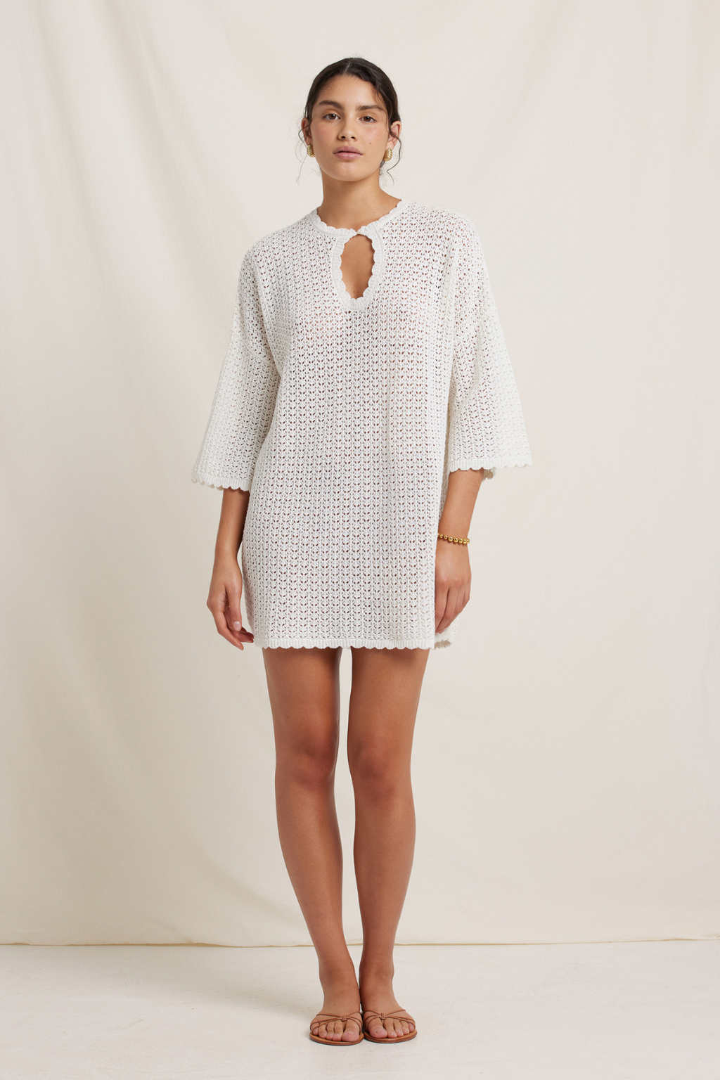 Signature crochet reimagined in a vintage—inspired silhouette. The new Pointelle Oversized Mini Dress is perfect for lounging poolside or dressing up with summer sandals. Crafted in organic cotton crochet, signature scallop detailing adorns a relaxed silhouette while the functional front keyhole offers adjustability to suit you.