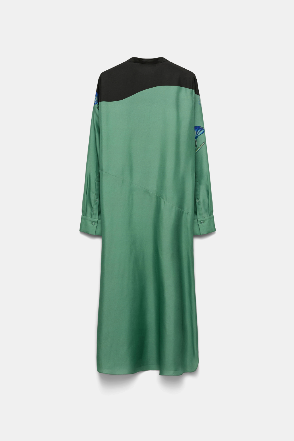 Wear a work of art: The silk shirtdress features Dorothee Schumacher's in-house designed key print. The mid-length style has a wrap-around tie collar, long sleeves and slight asymmetric hem. Scarf is removable.