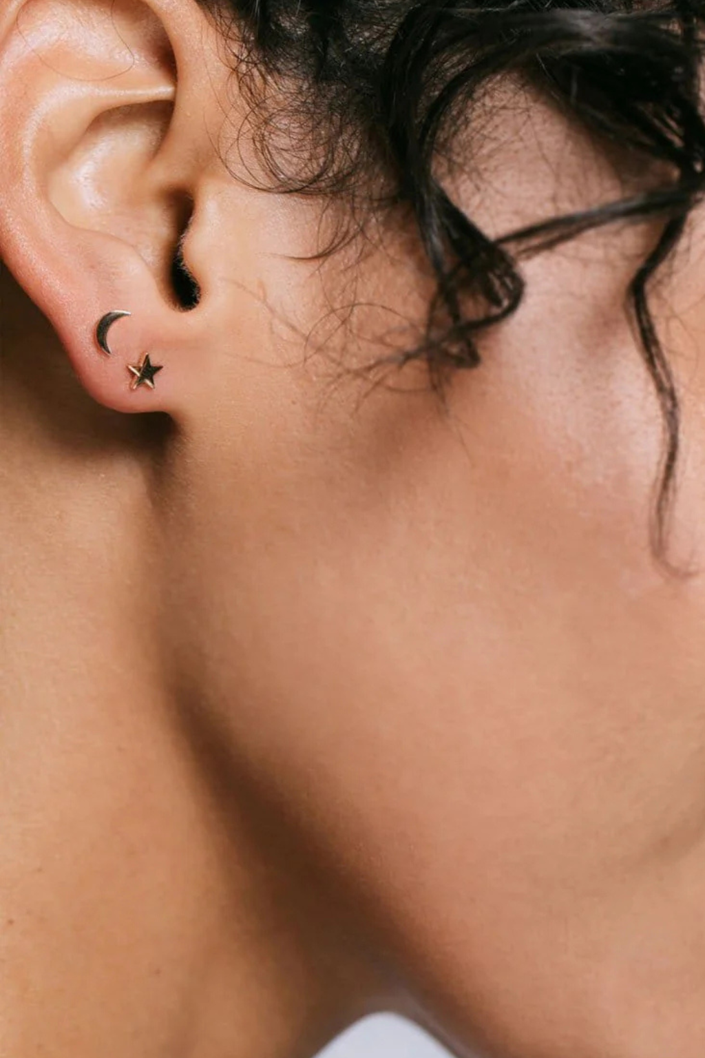 Kris Nation's most popular mis-matched pair - star and moon stud earrings.