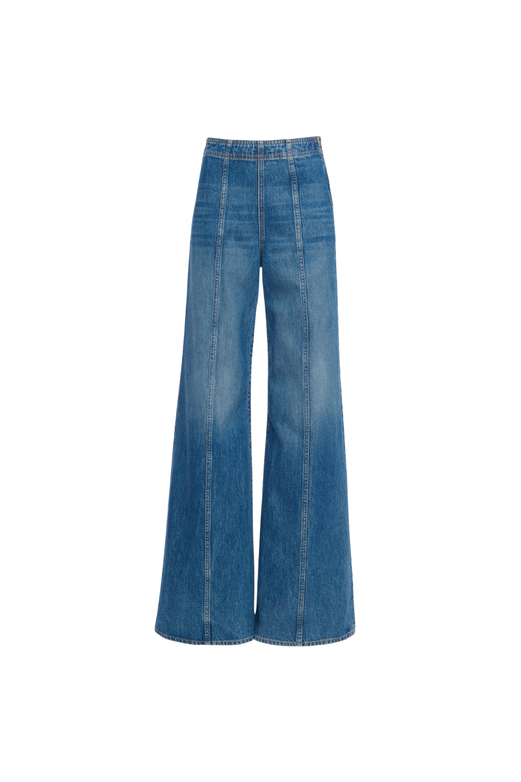 The new Bianca is a classic wide-leg with a distinctive feel, designed with center-front raised seams down each side. It is responsibly handmade in Los Angeles from premium denim in a medium indigo wash that’s uniquely faded for a vintage feel. It has a flattering, high-rise waist and a Hollywood waistband for a clean finish. It fastens with a side-seam zipper.