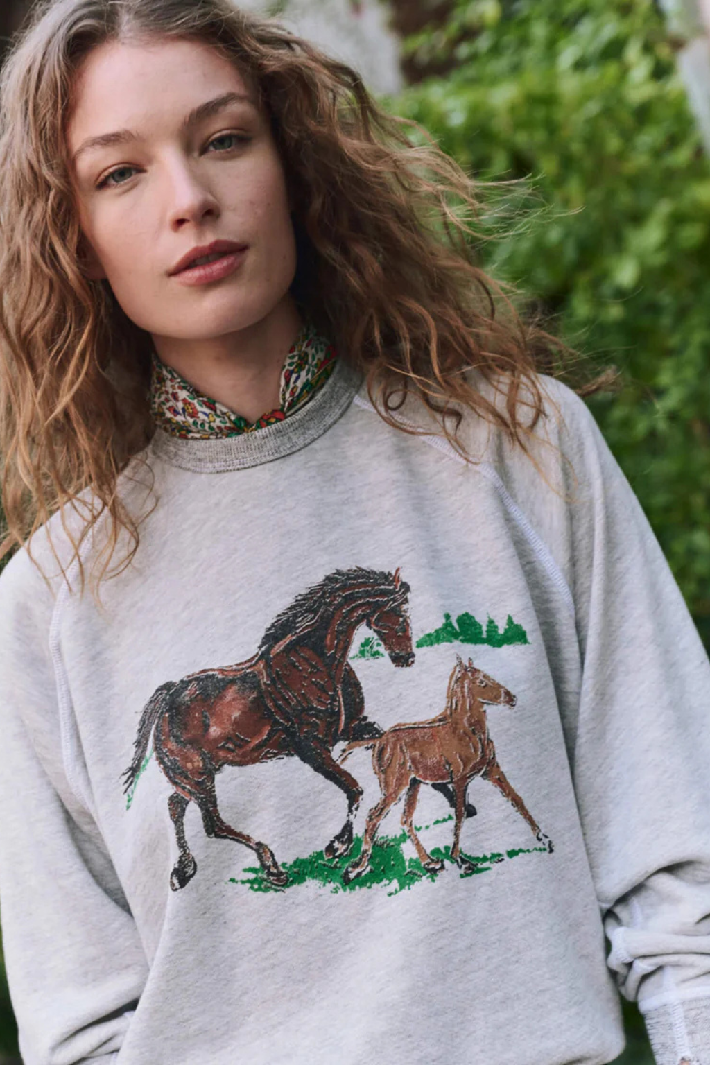 This classic sweatshirt features a western-inspired Running Horses motif, printed on The Great's soft as ever terry fabric with a slightly faded graphic application that gives it a perfectly worn-in, vintage feel. Based on a favorite vintage sweatshirt body and featuring signature slit on the left cuff. We love pairing this sweatshirt back to tomboy-style staples as well as ironically styled back to feminine skirts or a floaty dress. Handcrafted locally in Los Angeles, our process ensures beauty and uniqueness—no two pieces are alike.