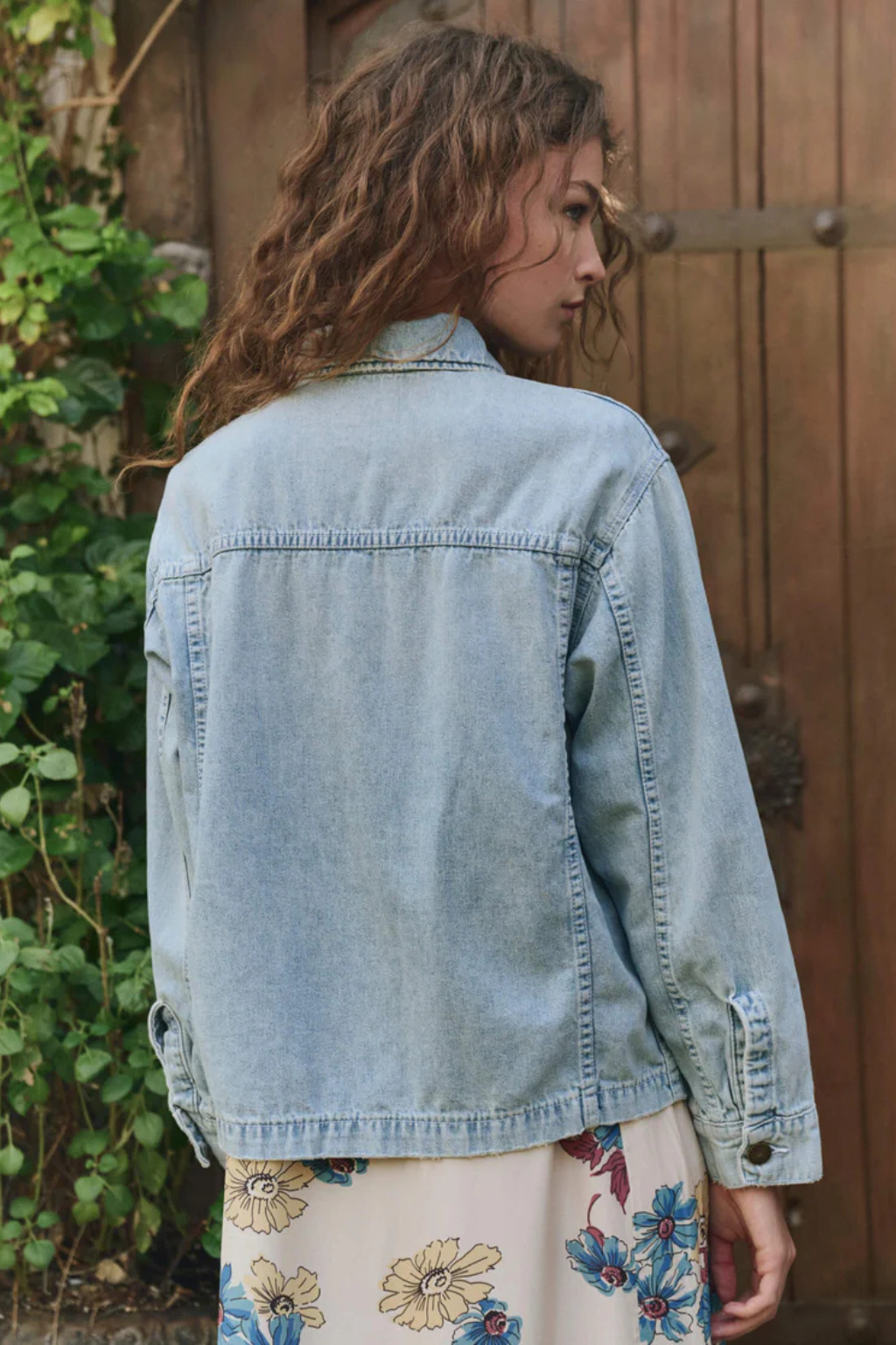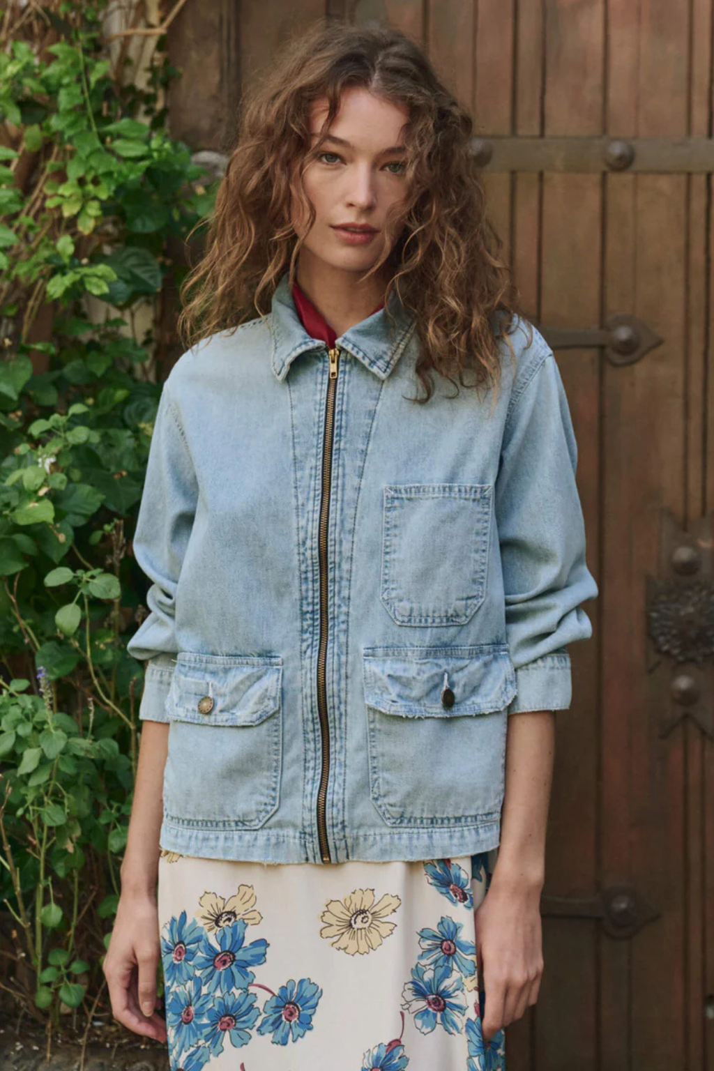 Inspired by time-worn utility staples, The Zip Front Chore Jacket is cut in an oversized silhouette for a borrowed-from-the-boys feel. Crafted in Los Angeles from lightweight cotton-hemp denim, it features a soft vintage-inspired wash and classic workwear details—think patch pockets with antique brass buttons and a sturdy zip-front closure.