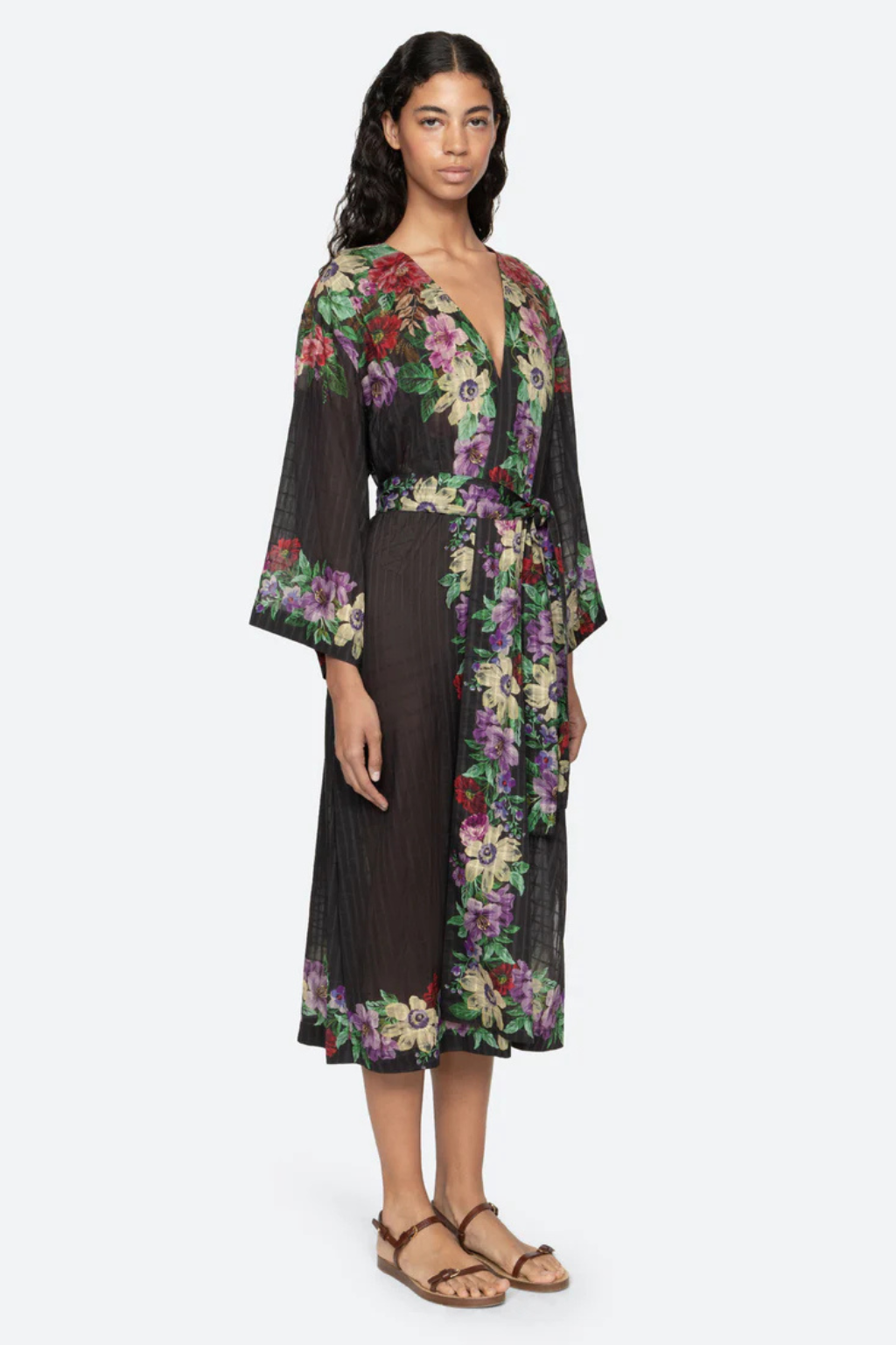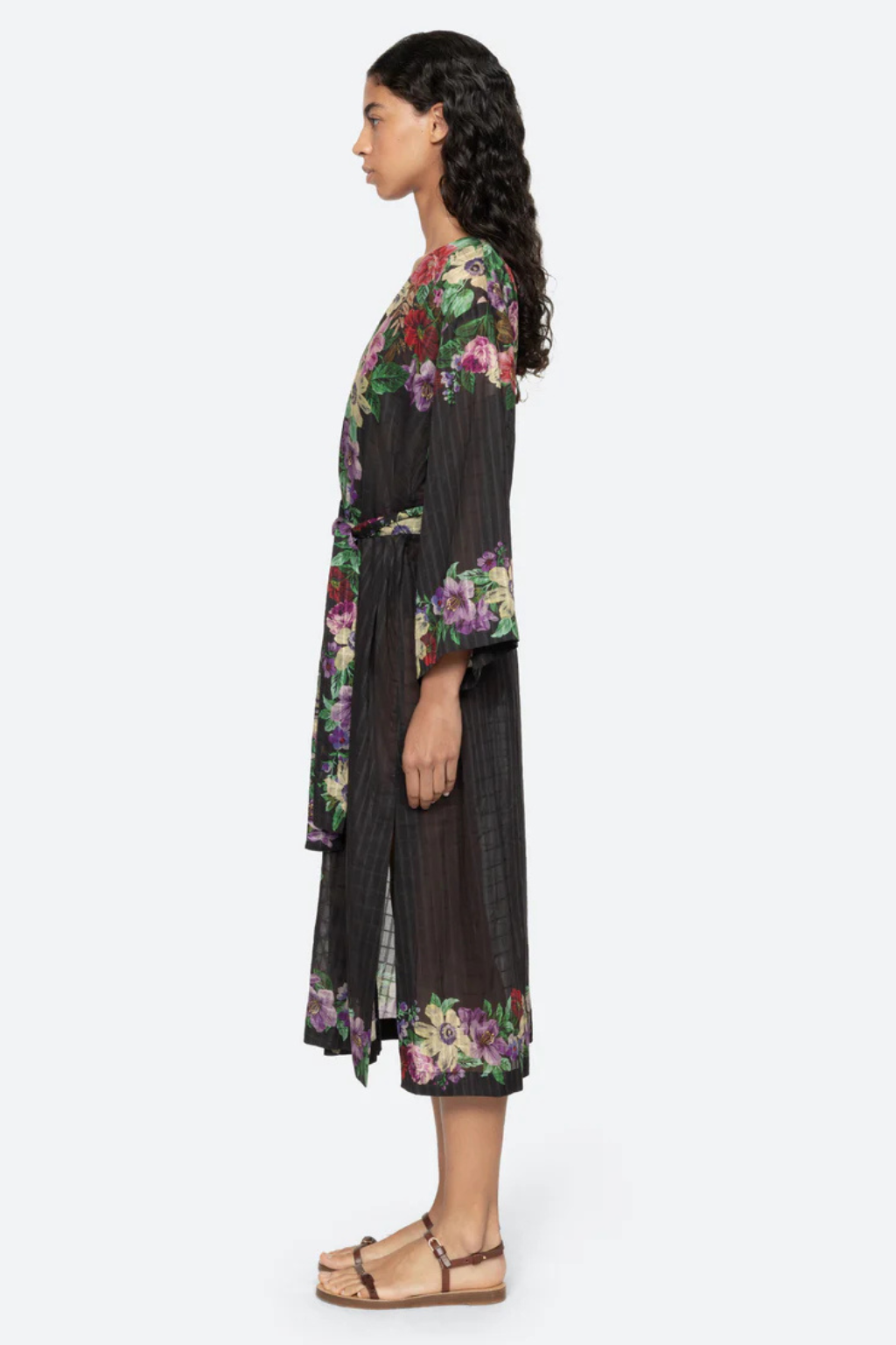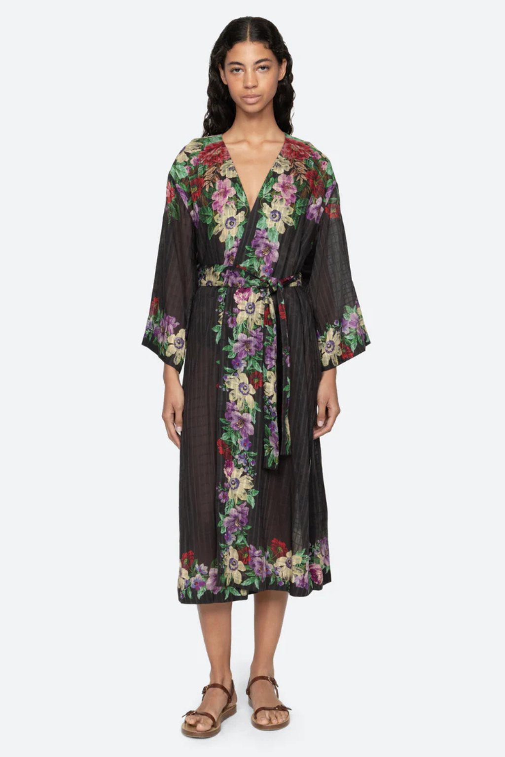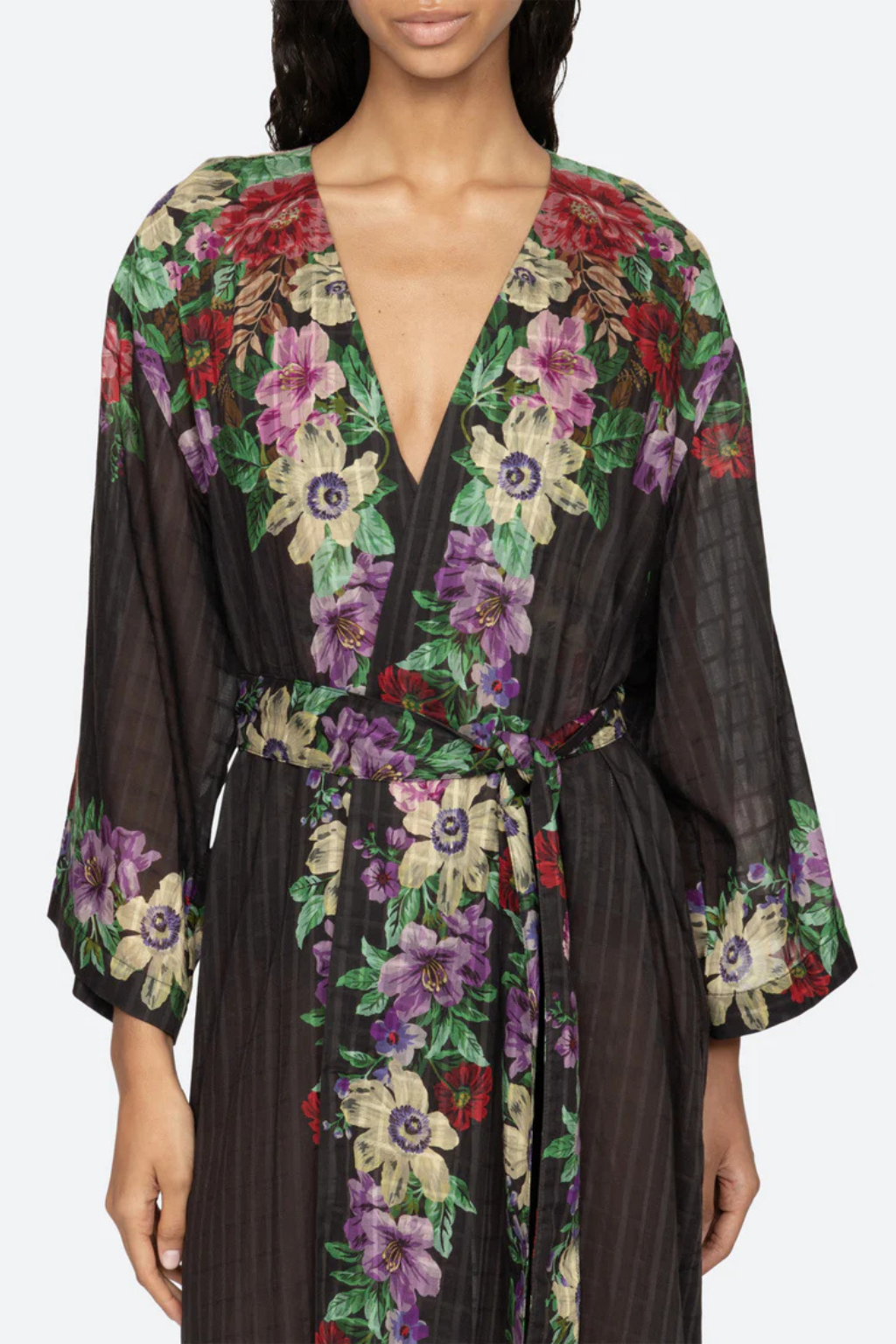 The Viktoria floral print robe coverup features a detailed all over floral motif and a relaxed, flowing silhouette. Lightweight and breezy, its the perfect layer for resort wear. Front tie closure. Designed for a relaxed fit.